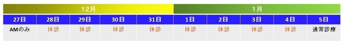 年末年始の休診は以下の通りとなります。